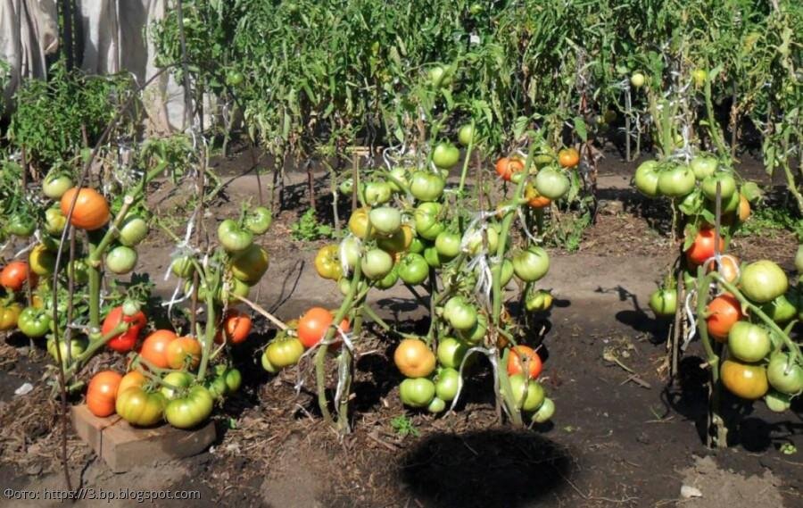 Отсутствие теплицы на даче вовсе не является поводом для отказа от выращивания таких вкусных и любимых многими овощей, как помидоры. Учитывайте то, что помидоры не должны быть посажены рядом с картофелем, так как они могут пострадать от фитофторы. Если почва, в которую вы собираетесь сажать овощи, является суглинистой либо глинистой, то сперва ее необходимо разрыхлить и добавить в нее перегной или торф. В крайнем случае подойдут опилки или солома. При посадке помидоров в торфянистый грунт рекомендуется добавить перегной и дерновую землю. Добиться хорошего нагревания грядок с помидорами можно с помощью укрывания их пленками. Совершать посадку помидоров лучше всего в момент, когда почва прогрета до температуры не меньше 10 градусов. В каждую лунку надо добавлять суперфосфат и сульфат калия. Рассада сажается вертикально. Грунтом следует засыпать лишь корни. Сразу же после посадки помидоры можно подвязывать к колышкам, чтобы не давать листьям наклоняться к земле, а также для того, чтобы з