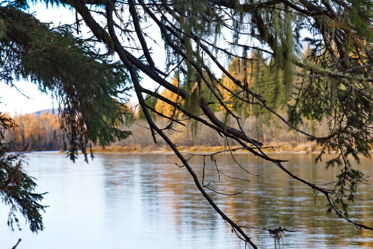 Утро очередного дня преподнесло сюрприз. После нескольких дней солнечной и жаркой погоды всё радикально изменилось. Сильный ветер, дождь со снегом, ковёр из иголок лиственницы на поверхности воды... всё это прямо указывало - рыбалка будет трудовая!