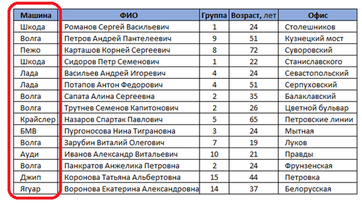 Отбор дубликатов в таблице. Часто встречаются задачи, когда надо очистить список от дубликатов. Один из простейших способов для решения данной задачи является использование функции «ЕСЛИ». Раcсмотрим решение данной задачи на примере: Есть таблица со столбцом «Машина»: 1. Добавляем столбец «Отбор», в котором будем делать отбор значений. 2. Сортируем таблицу по столбцу «Машина». 3. Отбор дубликатов. Для отбора дубликатов используем функцию «ЕСЛИ». 3.1. В поле «Лог_выражение» пишем условие совпадения двух следующих друг за другом строк «C1» и «C2». 3.2. В поле «Значение_если_истина» указываем «Дубликат», т.е. если условие выполняется, то ячейка примет значение «Дубликат». 3.3. В поле «Значение_если_ложь» пишем «ok», т.е. значение «ok» примет ячейка, в случае невыполнения логического условия, указанного в формуле. 3.4. Результат работы функции – корректное значение «ok». 3.5. Остаётся лишь скопировать формулу по всем строчкам данного столбца. 3.6. Результат можем наблюдать в т