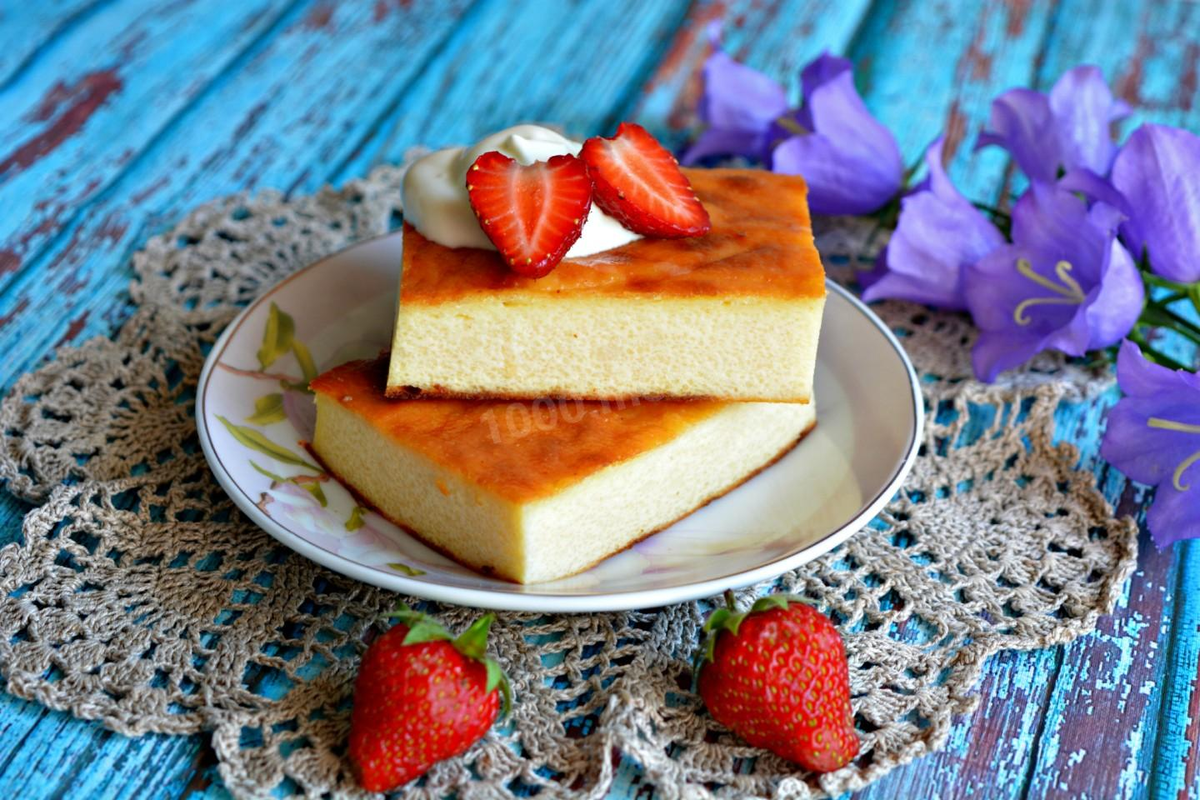 Продукты: Творог - 500 г Яйца - 5 шт. Сахар - 2 ст. ложки Манная крупа - 5 ст. ложки Приготовление: 1. Перемешиваем творог с яйцами. 2. Добавляем сахар, перемешиваем. 3. Добавляем манку, тщательно перемешиваем. 4. Даём настояться минут 20. 5. Выпекаем творожную запеканку в разогретой духовке при 180 градусах 30 минут.