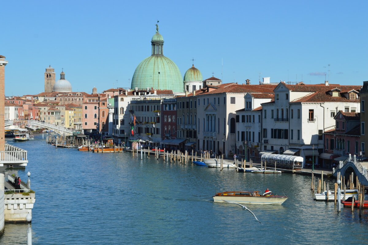Продолжение заметок о путешествии на автомобиле в октябре 2016. Начало здесь. У каждого путешественника Венеция своя - кому то нравится, кому то нет... кто то ищет запах от каналов, а кто то видит только невероятную красоту вокруг. Но любой путешественник скажет: Венеция одна такая, она ни на что не похожа. Тут нет автомобилей по определению и главная артерия это Гранд Канал. Он проходит через всю Венецию от площади Рима до Лагуны. Именно по нему плывут и гандолы с туристами, и вапоретто, и водные такси и даже полицейские. Для меня, как бывшего телевизионщика очень интересный факт - согласно википедии: первый фильм в истории кинематографа, запечатлевший путешествие (камера была установлена в гондоле) был снят именно здесь! Для большинства туристов Венеция начинается с площади Рима: поездами, автобусами, автомобилями прибывают туристы с материка. Интересен первый мост с площади – мост Конституции, ступени стеклянные, все фотографируются. Оно и понятно – первое впечатление, но это не В