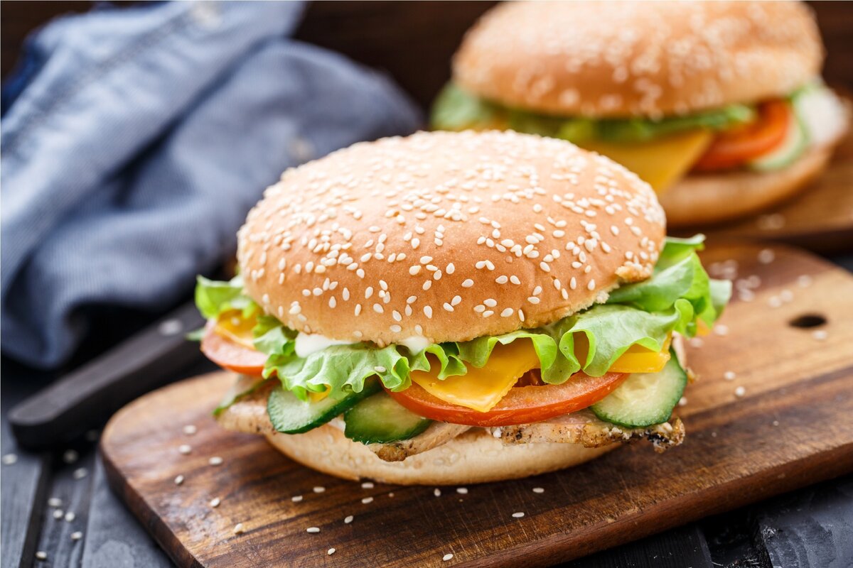 Здравствуйте! Уважаемые читатели! Сегодня мы с вами приготовим вкусный, а самое главное полезный гамбургер.гамбургер делается очень быстро примерно за 30 минут.нам понадобятся:булочки, фарш, лук, помидоры, яйцо, приправы, плавленный сыр нарезкой, листья салата и соус.гамбургер получается сытным и низко колоритным.смотрите ниже видео-рецепт.и готов те вместе с нами!