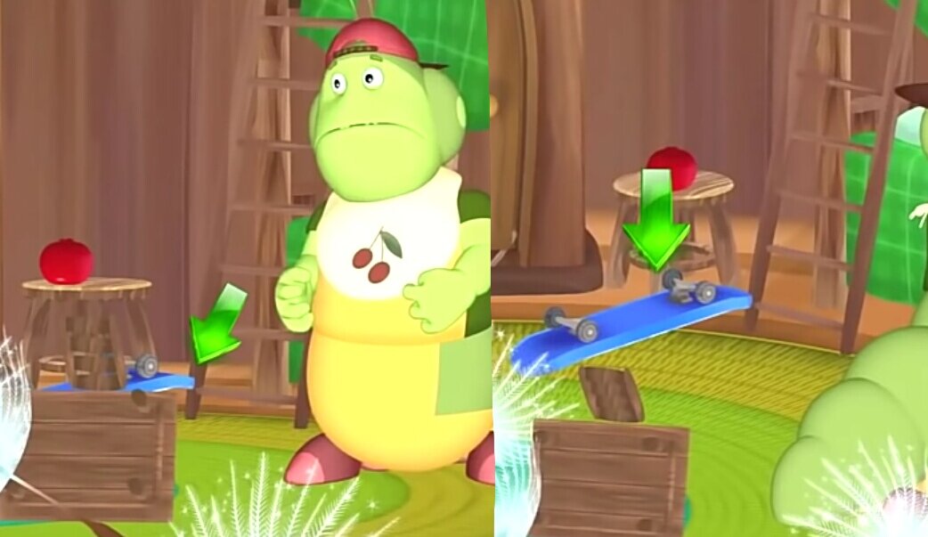 7 ляпов Лунтика. В этой статье я вам расскажу и покажу ляпы мультфильма Лунтик. На этом кадре, лежит большой камень, а на другом кадре его уже нет. Нет камня как нестранно, о чём только думают когда создают мультфильмы. На этом кадре Пупсень (вроде я забыл как его завут если не правильно извените) он стоит долеко от Миллы. На этом кадре она стоит рядом с ним, такое чувство что он научилась телепортироваться. Эти бандиты Вупсень и Пупсень, положили в шкаф несколько кострюль. Можно предположительно подсчитать кострюли, их тут 5 (если я не ошибаюсь) На этом кадре на Лунтика падает намного больше кострюль (в 2 раза больше) вто этим мне и не нравится логика мультфильмов. Посмотрите по внемательней на ведро с игрушкой. Здесь появились камни, не знаю зачем добовлять их, если на другом кадре его не будет. Ну здесь огромный ляп я бы сказал, посмотрите на скейт. И не только скейт перемистился, но и табуретка с яблоком, деревяный ящик. Обратите внимание на игрушки которые лежат возле л