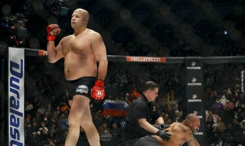 Федер Емельяненко четырёхкратный чемпион мира по смешанным боевым искусствам - ММА в тяжёлом весе по версии «Pride FC», двукратный - по версии «RINGS», двукратный - по версии «WAMMA», четырёхкратный чемпион мира и девятикратный чемпион России по боевому самбо. Заслуженный мастер спорта по самбо и мастер спорта международного класса по дзюдо. В период с 2003 по 2010 годы Емельяненко не проигрывал, всемирно признавался самыми известными спортивными масс-медиа. Считается лучшим тяжем в истории. Вашему вниманию я выбрал 5 самых ярких боёв Федера. 5) Бретт Роджерс(2010) - победа техническим нокаутом во втором раунде (1:48). Сложный поединок, в котором Емельяненко много, что не получалось. Федору не удалось добиться значимого преимущества над соперником в первом раунде ни в стойке, ни в партере. Американец же ударом сделал так, что у Емельяненко образовалось рассечение. Но во втором раунде мощнейшим боковым ударом в голову Емельяненко рушут на конвас Роджерса, затем следует серия добивани