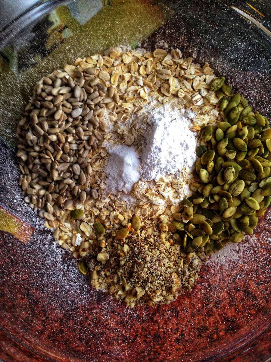 Здравствуйте дорогие читатели! Ну что же, карантин , к сожалению , продолжается ! Но карантин карантином , а обед по расписанию. Сегодня суббота и можно побаловать себя и семью вкусной выпечкой. Предлагаю приготовить овсяные бискотти по рецепту Бобби Флая. Сделать это совсем несложно, а результат порадует даже неопытного кулинара .Итак, приступим. Нам понадобится : 1 стакан муки 0,5 стакана овсяных хлопьев 1\2ч.ложки разрыхлителя +1\4 чайной ложки соды 2-3 столовые ложки сахара + 1ст.ложка меда(кленового сиропа) 2 яйца 1 ст.ложка растительного масла + 3 ст.ложки растопленного сливочного ванилин или цедра апельсина орехи грецкие или фундук одна горсть семечки подсолнечные и тыквенные по одной горсти изюм или вяленая клюква одна горсть Возьмем две миски.В одной смешаем все сухие ингредиенты(муку, овсянку, разрыхлитель ,соду, изюм,орехи и семечки), во второй взобьем яйца с сахаром. Добавим к яйцам мед,сахар, растительное и сливочное масло ,ванилин или цедру и еще раз хорошенько взобьем