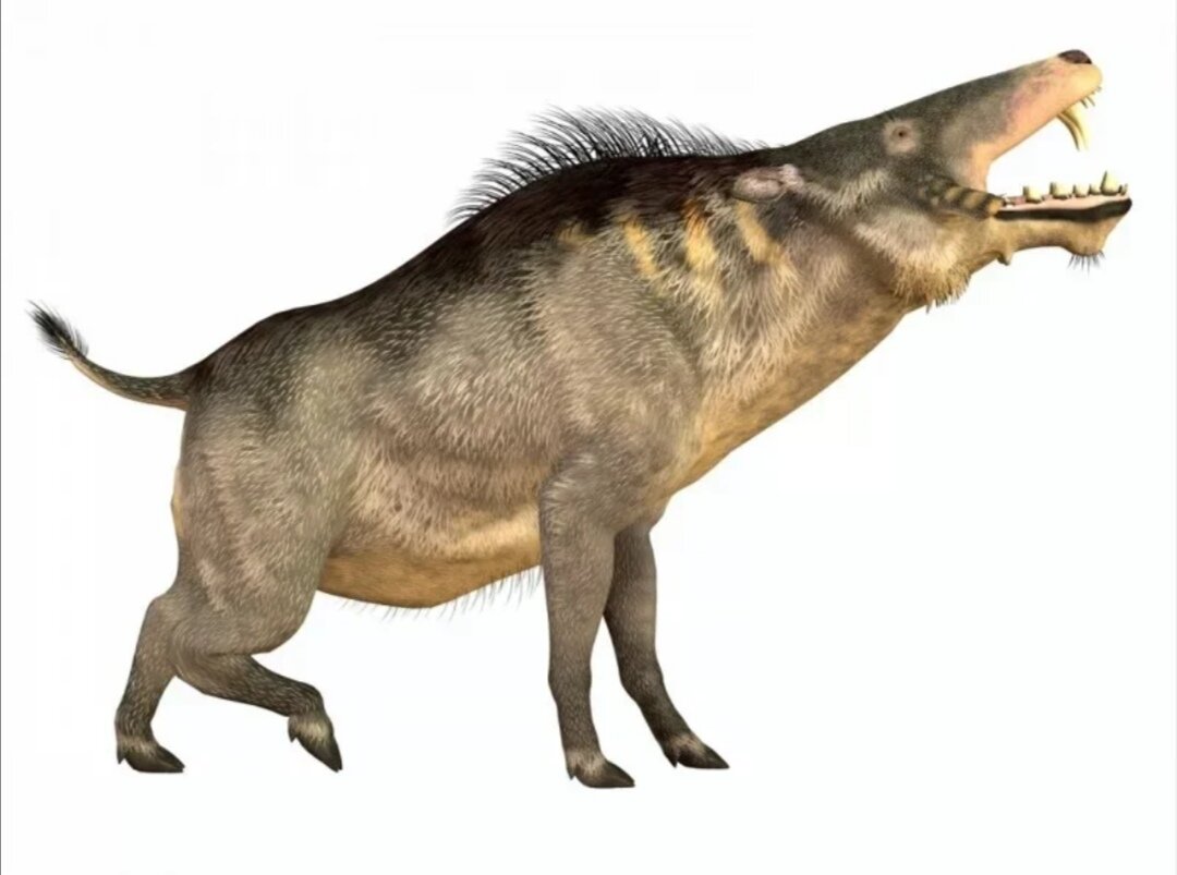Энтолодонты – вымершее семейство свинообразных существ, которые проживали на Земле около 37 миллионов лет назад. Этих гигантских созданий можно было встретить на территории Северной Америки, в некоторых частях Европы и даже Азии. Как и их современные родственники, энтелодонты были всеядными, и их диета состояла как из мяса, так и из растительности, а значит, у них были невероятно острые зубы. Отличительной особенностью этих свиней-терминаторов являются большие выступы на голове, похожие на рога. Эти животные нередко сражались друг с другом, и оставляли на черепах противника вмятины глубиной в дюйм. Такая мощь оправдана, ведь они достигали 120 см в высоту и 3 метров в ширину, и весили при этом около 450 кг.