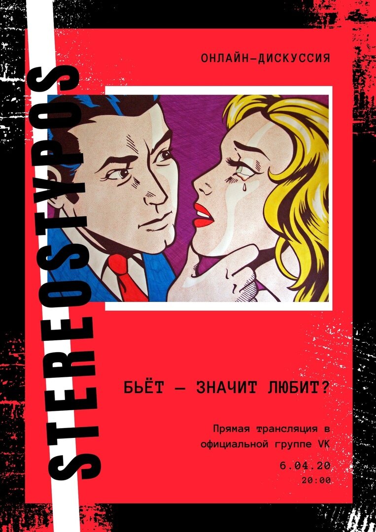 6 апреля в 20:00 состоится онлайн-дискуссия на тему "Бьет-значит любит?" Приглашаем всех желающих к участию: просто отправьте нам свой вопрос или размышления на тему, и в прямом эфире мы побеседуем и выразим свои мнения. Ждем! Вопросы и размышления можно отправить в раздел Предложить новость с пометкой "Дискуссия №1" в группе ВК https://vk.com/stereostypos