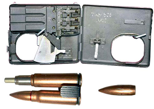 Созданное в 1954 по заказу КГБ СССР оружие представляло собой компактное, трёхзарядное, бесшумное стреляющее устройство калибра 7,62 мм, замаскированное под портсигар длиной в 11 см, вместе со специальным патроном СП-2. Скрытность т.е. бесшумность, беспламенность и бездымность, обеспечивались при помощи патрона замкнутого типа СП-2, пороховые газы которого, запирались внутри гильзы. Кнопка замка портсигара служила спусковым крючком. Из-за длины ствола, не превышающей 25мм, пришлось создать заряд базирующийся на капсюльном составе из калибра 12,7 мм и быстрогорящего пороха. При выстреле, пуля массой в 6 грамм, набирала скорость равную 175 м/с и на дистанции в 5 метров могла пробить 2 мм-ый лист стали. Прицельная дальность стрельбы составляет 10 метров. Конструкция огнестрельного портсигара включает три стальных ствола связанных в съемный прямоугольный блок рассположенный в стальном корпусе с овальным сквозным отверстием, которое образует спусковую скобу. Каналы стволов нарезные, а за
