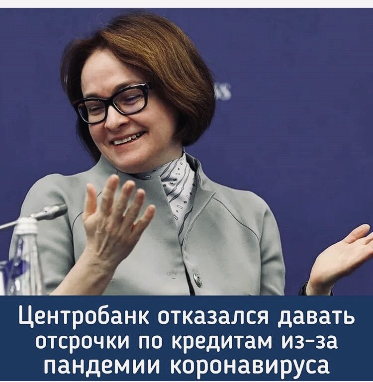 Короновирусная пандемия ещё не повод помогать гражданам. Центробанк 3 апреля выпустил пресс-релиз и объявил что все закредитованные Россияне должны платить кредиты в срок, не смотря на форс-мажорные обстоятельства. Напомним что Накануне президент Владимир Путин подписал закон, дающий пострадавшим от коронавируса россиянам, а также индивидуальным предпринимателям, малому и среднему бизнесу право на кредитные каникулы, предусматривающие отсрочку погашения суммы основного долга и уплаты процентов по кредитам. Но обращения президента банк решил не воспринимать.Как же быть Россиянам у кого нет возможности оплачивать в данный момент ?