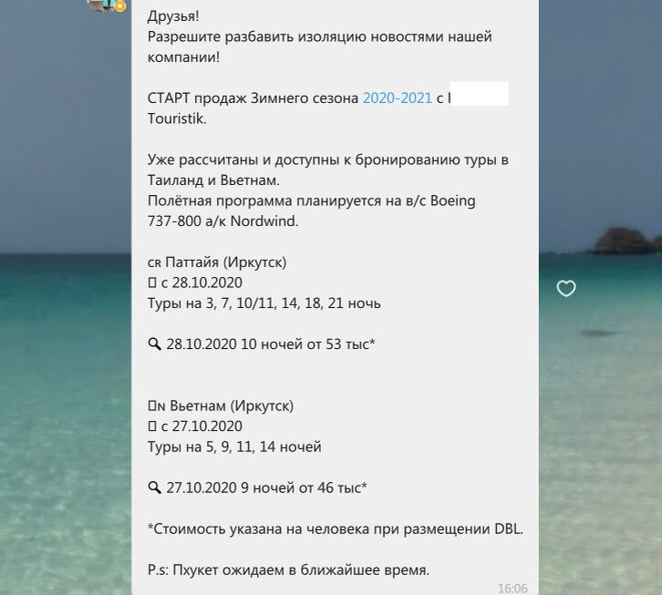 Вот есть позитивные люди. Верят, что жизнь и бизнес не заканчиваются на весне 2020. Знакомые туроператоры взялись за дело и шлют вот такие предложения: Ценники чуть выше обычного, т.к. курс рубли сильно просел. Посмотрел, у них есть предложения по таким направлениям на осень: Турция, ОАЭ, Таиланд, Кипр, Иордания, Италия, Андорра, Болгария, Финляндия. Интересно, это у туроператоров оптимизм так плещет или уже от безнадёги пытаются хоть какие-то копейки заработать? Ведь прогнозы на осень еще никто не давал. Откуда такая уверенность, что туристическая отрасль доживёт, не обанкротится. Вряд ли они знают что-то такое о будущем, чего не знаем мы. Со стороны обычного туриста, сам себе задаю вопрос: а есть ли смысл сейчас закапывать наличные в такое сомнительное мероприятие? Ведь туроператор заплатит авиакомпании и отелям традиционно за пару недель до тура, или вообще попытается всё сделать с отсрочкой платежа. Деньги им сейчас, скорее всего, нужны как шанс на спасение. Желание туроперато