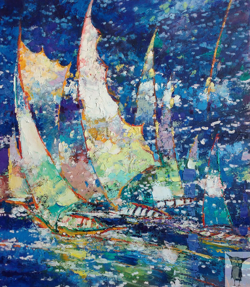 Юрий Волков Регата 100×90 хм — 180 000 Юрий Волков Раковина 65×68 хм — 100 000 Юрий Волков Завтрак с фараонами 98×53 хм — 160 000 Юрий Волков Жаркое лето 60×50 хм — 68 000 Юрий Волков Утро старого моста 50×70 хм