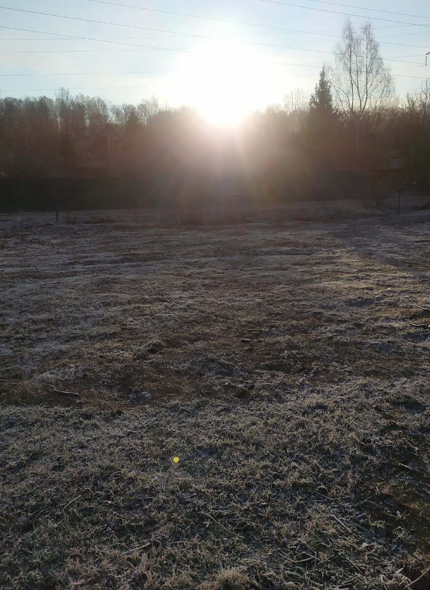 Уже полторы недели живу с детьми на даче в Подмосковье. Не жалею, что приехали в эти вынужденные выходные за город. Думаю, в Москве было бы тяжелее сидеть в квартире. Общаюсь я изредка только с одними соседями. Встречаемся, когда выхожу в колодец за водой. Они тоже приехали с детьми на период карантина. А так дачников очень мало Погода очень неустойчивая. Сегодня ночью было -3, но уже в 7 часов выглянуло солнце. Я вышла на улицу, сделала несколько фото. Вся земля покрыта инеем. Вчера соорудила маленький парничок из досок, накрыла стеклом. На стекле сегодня узоры. А небо красивое. За полторы недели выезжала два раза в магазин на электровелосипеде. Но видно проколола камеру. Решила съездить в магазин на такси. До магазина километра три. Такси приехало минут через 20-25. Навигатор вёл водителя странными путями, прежде чем направил правильной дорогой, а так бы приехал минут через десять. Стоимость поездки 160 руб. Водитель был без маски. Так до конца и не ясно, нужны ли они? У