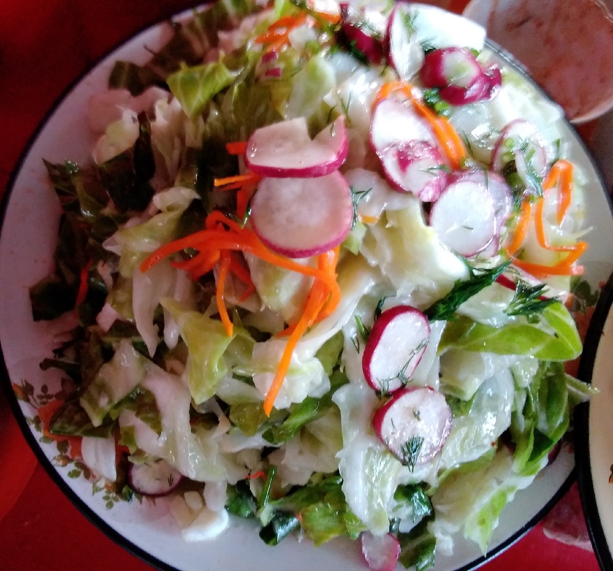 НЕМНОГО ИСТОРИИ Капусту белокочанную, вернее ее прародительницу, начали выращивать еще в конце каменного века. В Древнем Египте ее подавали на десерт, считалось что она улучшает пищеварение. А в Древней Греции капустой лечили желчные болезни, гнойники, и раны.Пифагор в пятом веке до н.э. писал,что капуста поддерживает бодрость духа,и поддерживает хорошее настроение. Весной квашеная капуста не заменима, она содержит большое количество витамина С, что очень необходимо нашему организму, и она действительно способствует улучшению пищеварения. К тому же в ней на 100 грамм всего 19 ккал. Рецепт, которым я хочу с вами поделится, очень прост, но капусточка получается отменная. Нам понадобится: капуста, не большой кочан, одна большая морковь,черный перец горошком, лавровый лист, кто любит можно взять еще гвоздику. соль, сахар. Способ приготовления: Капусту нарезаем Морковь на крупной терке Потом все смешать в чашке И уложить все в банку, утрамбовывая, в промежутках между слоями , добавляем