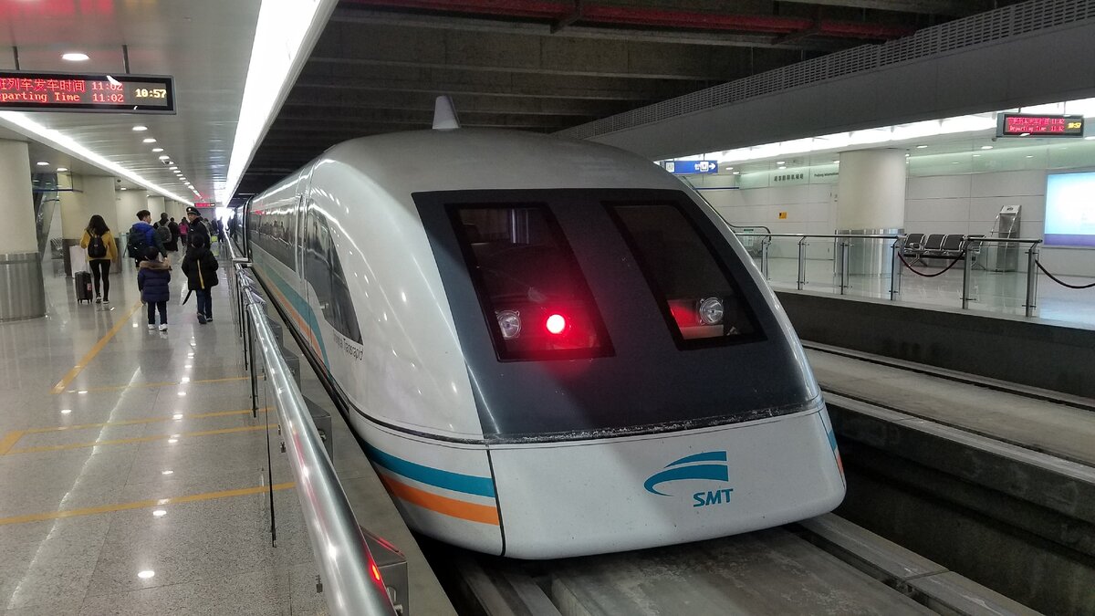 В современном мире многие государства работают над созданием высокоскоростных железнодорожных магистралей. На данном этапе в этом деле неплохо преуспевают Франция, Япония, Южная Корея и Китай. В последней из перечисленных стран в настоящее время организовано регулярное движение самого высокоскоростного поезда. Шанхайский маглев - высокоскоростная линия, соединяющая станцию метро Лунъян Лу и международный аэропорт Пудун. Расстояние в 30 километров поезда преодолевают примерно за 7 минут. Концепция организации движения такого поезда несколько отличается от привычной нам. Колеса на таких скоростях поезд не использует: вместо этого он зависает над эстакадой на магнитных подвесах на высоте около 15 см. В источниках это явление называется магнитной левитацией. На испытаниях поезд разгоняли до 600 км/ч. На практике в пиковые часы движется не быстрее 430 км/ч. Ощущения от движения поезда мне показались аналогичны тем, которые испытываешь в самолете, когда судно набирает скорость для взл
