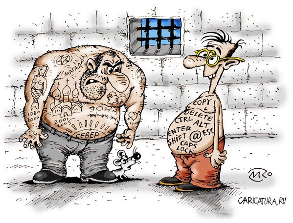посадили мужика в тюрьму,и вот он заходит в хату а тут ему с ходу -вилкой в глаз? или в ж*пу один раз? мужик поворачивается к двери и давай стучать,кричать (начальник ты что меня в камеру с пи*арасами посадил??? -это почему мы пи*адасы? "спрашивают сокамерники" -а что-то я тут одноглазых не вижу
