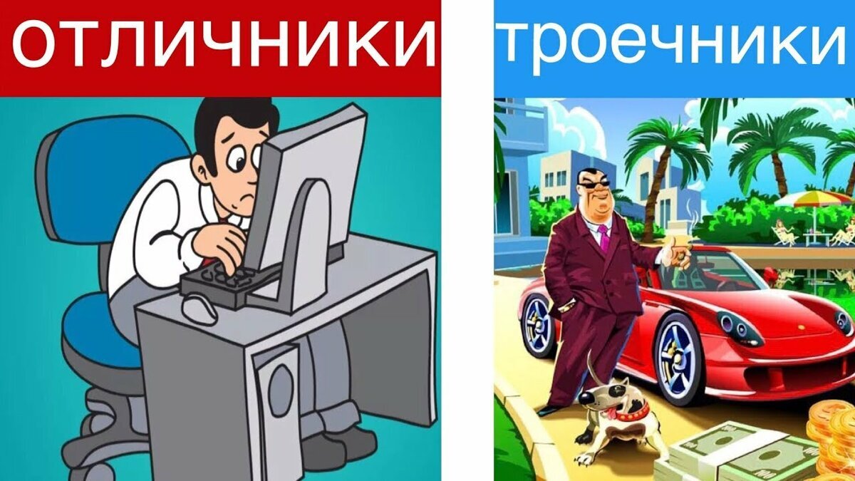 1.Троечники ставят под сомнение значимость школьной системы. Они ходят на учебу, но не могут слепо верить системе образования, для них это фабрика производящая послушных и трудолюбивых работников, троечники не хотят себя так ограничивать (вставка). Троечники более заинтересованы в прямолинейном подходе, им по душе практический подход, а не теоретические методы. 2.Они не боятся проигрывать и получать плохие оценки. Всем известна поговорка: «Терпенье и труд все перетрут», и ключевое слово ТЕРПЕНЬЕ, оно как нельзя лучше характеризует менталитет троечника. В то время, когда отличники пытаются сделать все идеально с первой попытки, троечники не боятся проигрывать, даже несколько раз. Проблема в стремлении к совершенству, заключается в том, что неудача ощущается гораздо сильнее , вместо того, чтобы пытаться сделать отлично все сразу, троечник знает, что могут улучшить свои результаты снова и снова. После очередного провала они думают, что ошибки это ступени к успеху, а опыт прекрасный учи
