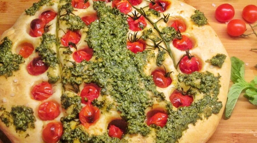 Как готовится итальянская фокачча с черри и соусом песто