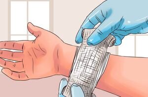 Повязку можно использовать для остановки кровотечения, а также чтобы не допустить попадания в рану инфекции. Иначе, повязка как бы заменяет кожу, защищая внутренние ткани. Вату на рану накладывать не следует, т.к. позже придется потратить время, чтобы отделить эту вату от раны. Перевязочный материал для повязки должен быть по возможности стерильным. Если нет под рукой готового, то можно сделать самостоятельно, например, из постельного белья. Нестерильную ткань можно сделать стерильной, предварительно её прокипятив или прогладив утюгом с функцией отпаривания. Кроме того, ткань можно намочить и поместить на 2 минуты в микроволновку. Если ткань еще мокрая, то ей также можно перевязывать рану, это нормально.