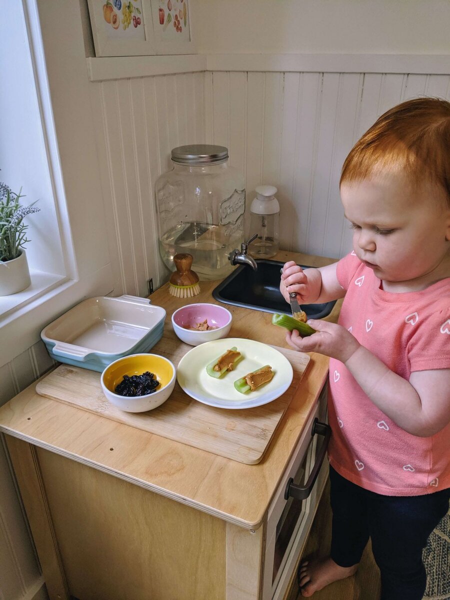 Движущей силой развития ребенка до 3-х лет является самообслуживание и домашние дела! Удивительно, ведь вокруг столько игрушек, которые якобы делают детей всесторонне развитыми(ведь именно этого так хотят родители,все родственники и воспитатели). Но на самом деле детям нужны не игрушки и бесконечные развивашки, а удовлетворение своей внутренней потребности "Я САМ". У детей от 15 месяцев до 3-х лет это стремление выражено ярче всего. Потребность все повторять за взрослыми. Помогать и быть полезным -Борьба за независимость -Развитие воли -Внутренняя мотивация ухаживать за собой и окружающей средой. Именно поэтому,так важно организовать кухню так, чтобы ребенок мог сам себя на ней обслужить. Ниже несколько лайфхаков, которые помогут вам создать развивающее пространство на кухне для малыша: Для начала, обезопасим кухню. Уберите все острые предметы, бытовую химию и всё, что может причинить вред здоровью ребенка, в верхние шкафы. В нижних шкафах и ящиках оставляем только безопасные предм