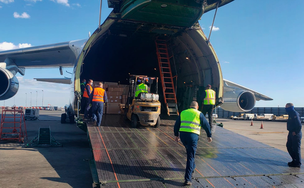 1 апреля большой грузовой самолет АН-124 вылетел в США. На борту находилось большое количество аппаратов ИВЛ и других медсредств.