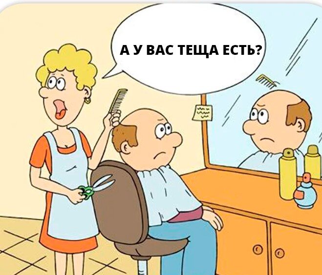 Анекдот: Стрижется мужик в парикмахерской, и вдруг парикмахер спрашивает, есть ли у него теща