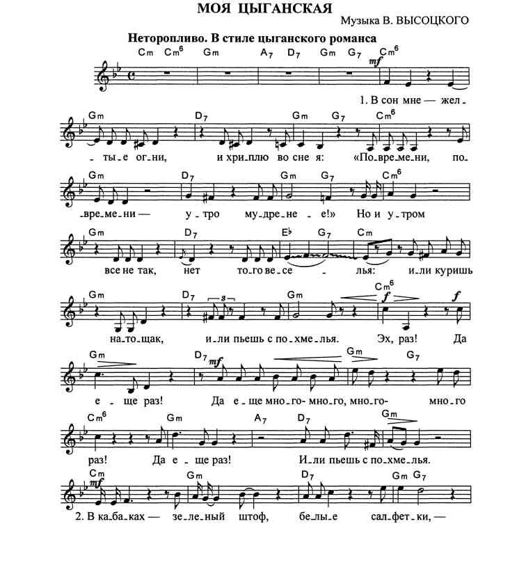 Текст: В сон мне - желтые огни, И хриплю во сне я : "Повремени, повремени - Утро мудренее!" Но и утром всё не так, Нет того веселья : Или куришь натощак, Или пьешь с похмелья. В кабаках - зеленый штоф, Белые салфетки, - Рай для нищих и шутов, Мне ж - как птице в клетке. В церкви - смрад и полумрак, Дьяки курят ладан... Нет, и в церкви всё не так, Всё не так, как надо! Я - на гору впопыхах, Чтоб чего не вышло, - А на горе стоит ольха, А под горою - вишня. Хоть бы склон увить плющом - Мне б и то отрада, Мне бы что-нибудь еще... Всё не так, как надо! Я - по полю вдоль реки : Света - тьма, нет Бога! А в чистом поле - васильки, Дальняя дорога. Вдоль дороги - лес густой С бабами-ягами, А в конце дороги той - Плаха с топорами. Где-то кони пляшут в такт, Нехотя и плавно. Вдоль дороги всё не так, А в конце - подавно. И ни церковь, ни кабак - Ничего не свято! Нет, ребята, всё не так! Всё не так, ребята..