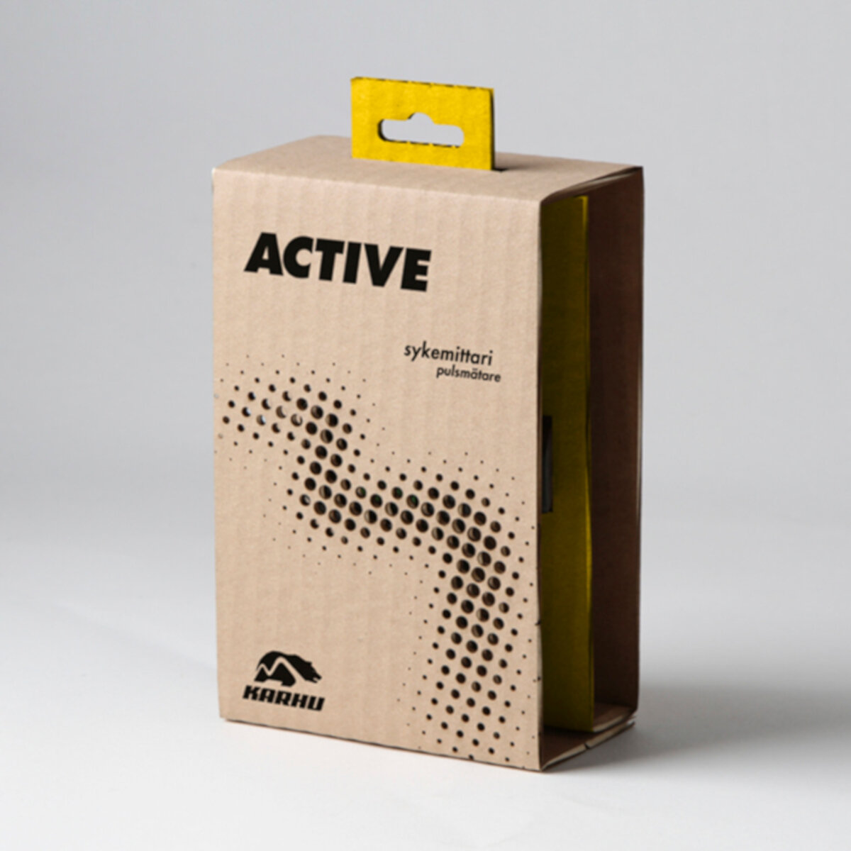 Оригинальная упаковка пульсометра представляла собой блистерную упаковку из твердого пластика, и Saara Majanne перепроектировала ее, заменив пластик на гофрированный картон и небольшую каплю клея.