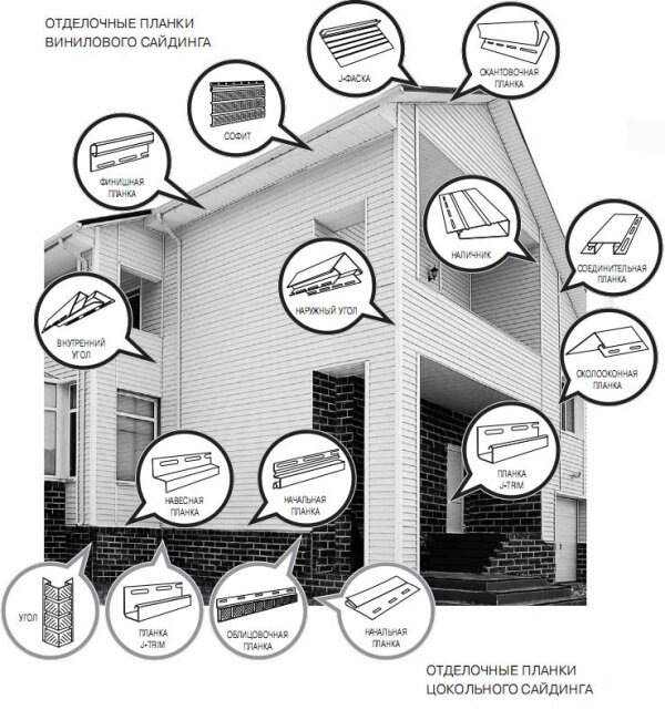 Знание некоторых моментов, поможет проконтролировать или проверить расчет. Итак, комплектующие для установки сайдинга включают следующие элементы: