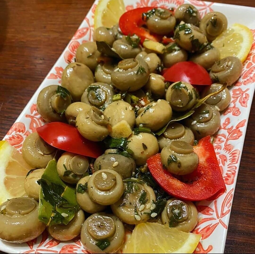 Ингредиенты: - Шампиньоны - 400 грамм; - Чеснок - 4 зубчика; - Семена кунжута - 1,5 ч.л.; - Рафинированное растительное масло - 50 мл; - Яблочный уксус - 3 ст.л; - Молотый кориандр - 1/4 ч.л.; - Соевый соус - 2 ст.л; - Петрушка и укроп- 0,5 пучка; - Перец черный горошком - 6-7 штук; - Перец душистый горошком - 3 штуки; - Лавровый лист - 2 штуки; - Соль по вкусу. Процесс приготовления: По желанию черный перец горошком можно заменить на небольшой стручок перца чили, а петрушку - любой другой зеленью, например, укропом или кинзой. Шампиньоны выбирайте мелкие и свежие, с белыми шляпками и крепкими ножками. Грибы тщательно промойте кухонной щеткой под холодной водой. Петрушку и укроп промойте под холодной водой, просушите. Чеснок почистите. Зелень и чеснок мелко нарежьте. В миске соедините растительное масло, соевый соус, яблочный уксус, специи, чеснок и зелень. Кунжут обжарьте на сухой сковороде. Добавьте к маринаду. Опустите грибы в кипящую подсоленную воду и варите после закипания