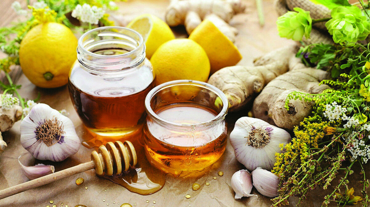 1.Имбирь. Бесспорным лидером в укреплении иммунитета является имбирь, который к тому же борется с инфекционными заболеваниями. Имбирь активирует синтез клеток в вилочной железе, что способствует укреплению иммунной системы. Регулярное употребление имбиря снижает концентрацию свободных радикалов, благодаря чему препятствует образованию злокачественных опухолей, замедляет процессы старения. Помимо всего имбирь активно используют в диетологии. 2. Мёд. Помимо того что мёд вкусный, он ещё и очень полезный. Он отлично укрепляет иммунитет, борется с негативными воздействиями на организм, помогает бороться с вирусами и бактериями. 3.Лук и чеснок. Пара, пожалуй, самых знаменитых борцов за здоровье. Отлично укрепляют иммунитет, обладают антиоксидантными свойствами, уничтожают микробы и вирусы. Для достижения наилучшего эффекта необходимо употреблять их в свежем виде. 4.Лимон. Благодаря высокому содержанию витамина «С», лимон отлично укрепляет иммунитет. Регулярное употребление благоприятно сказ