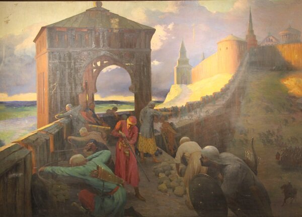 Вскочив на коней, Исламбек, Кебяк и Аликей Нарыков тут же умчались в город. Въехав в крепость через ворота в Муралеевой башне (сейчас - Тайницкая башня), они тут же приказали запереть все ворота!