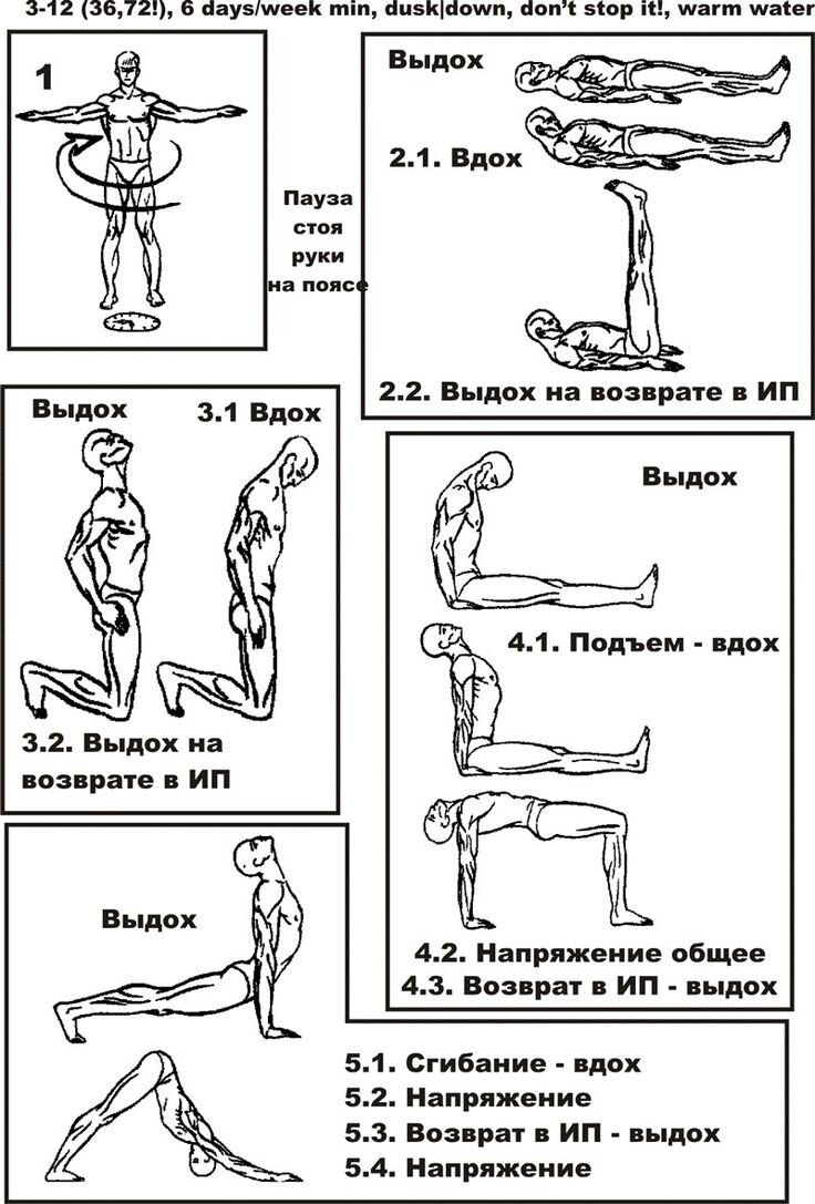 1. Делать надо КАЖДЫЙ ДЕНЬ. Максимум разрешен 1 пропуск в неделю. (Вообще то Упражнениями это называется для простоты. В оригинале это Ритуал, а их, как известно, надо выполнять строго всегда). Время для утренней серии упражнений с 2 часов ночи до 12 часов дня. Для вечерней серии с 2 часов ночи, соответственно, до 12 дня;