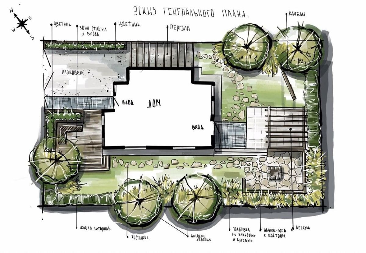 С помощью ручной графики дизайнер сада может прочувствовать каждую травинку и проработать каждую деталь. Это важно не только для самого дизайнера, но и для заказчика.