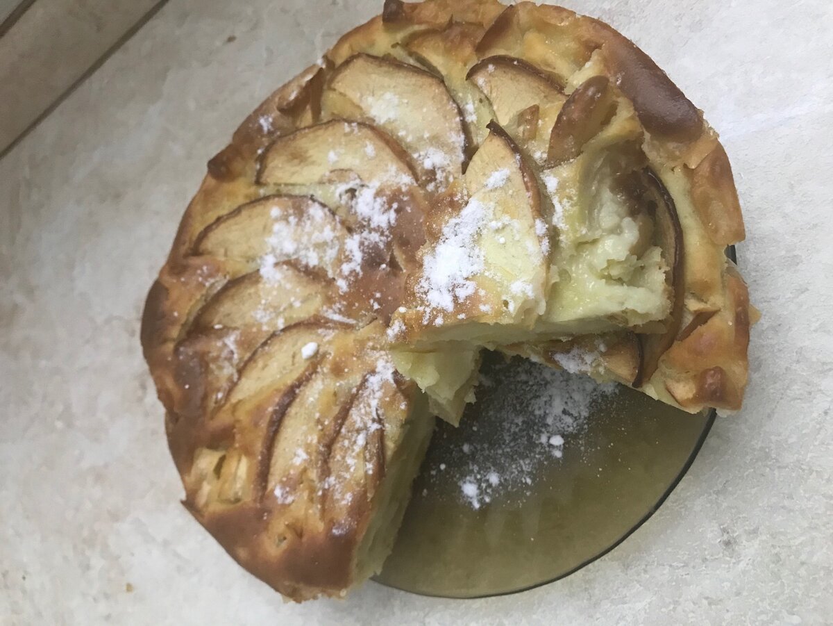 Доброго всем времени суток! Все сейчас сидят дома и не знают чем себя развлечь. Порадуйте своих близких домашней выпечкой, кстати если у вас есть маленькие дети они с удовольствием вам в этом помогут. И так вам понадобиться: Яблоки красные 4-5 шт. среднего размера ( можно зеленые, только если они кислые добавьте чуть больше сахара) Яйцо 2 шт. Кефир 1 стакан Сахар 1/2 стакана Мука 1 стакан( в зависимости от густоты) Сода 1/2 чайной ложки Берем глубокую емкость туда разбиваем яйцо, затем добавляем кефир, сахар, муку Перемешиваем миксером ( блендером или венчиком) кому как удобно. После того как все перемешали, добавим соду. Яблоки режим кубиками, пол яблока оставляем и нарезаем дольками для украшения. Перемешиваем с тестом и выкладываем в смазанную форму. И ставим в духовку на 180 градусов и 40 минут. Когда пирог будет готов, достаём из духовки и даём остыть минут 20-30. Завариваем вкусный чай, нарезаем нашу шарлотку и наслаждаемся хорошим вечером с любимыми !!! Будьте здоровы