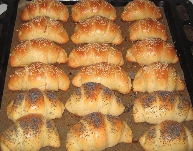 Ставим на противень и даем подойти. Желтки взбиваем с молоком и хорошо обмазываем со всех сторон рогалики.