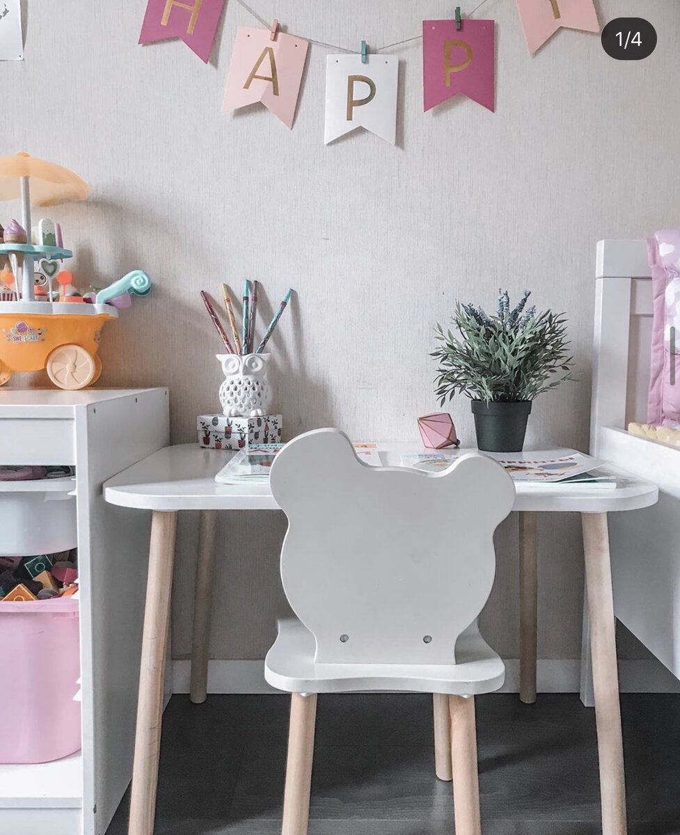 Рабочее место для ребёнка 🙇🏼♀️ Стол и стульчик у малыша должен появится уже к году, а то и раньше, как утверждают многие психологи! Так удобнее заниматься с пазлами, лепить из пластилина и просто творить ✂️ Лучше всего выбирать белый стол. Без лишних, отвлекающих от занятия картинок ☝🏻 Так же стена напротив не должна быть перегружена декором, и прочими картинками (в противном случае это будет отвлекать внимание и не даст сосредоточится ребёнку). Естественно стол и стул должны быть устойчивыми ☝🏻 Стул обязательно со спинкой, впоследствии не будет проблем с осанкой! Как правильно выбрать стол и стул? Лайфхак: посадите ребёнка на стул и попроситесь положить руки на стол, если локти находятся под углом 90 градусов то это идеально👌🏻 главное, чтобы не свисали или не были слишком высоко. (Надеюсь я понятно изъяснилась 😆🙈) Такого плана набор прослужит лет до 4х, в дальнейшем, можно купить качественную парту, которая подгоняется под рост ребёнка. Если вы изначально предус