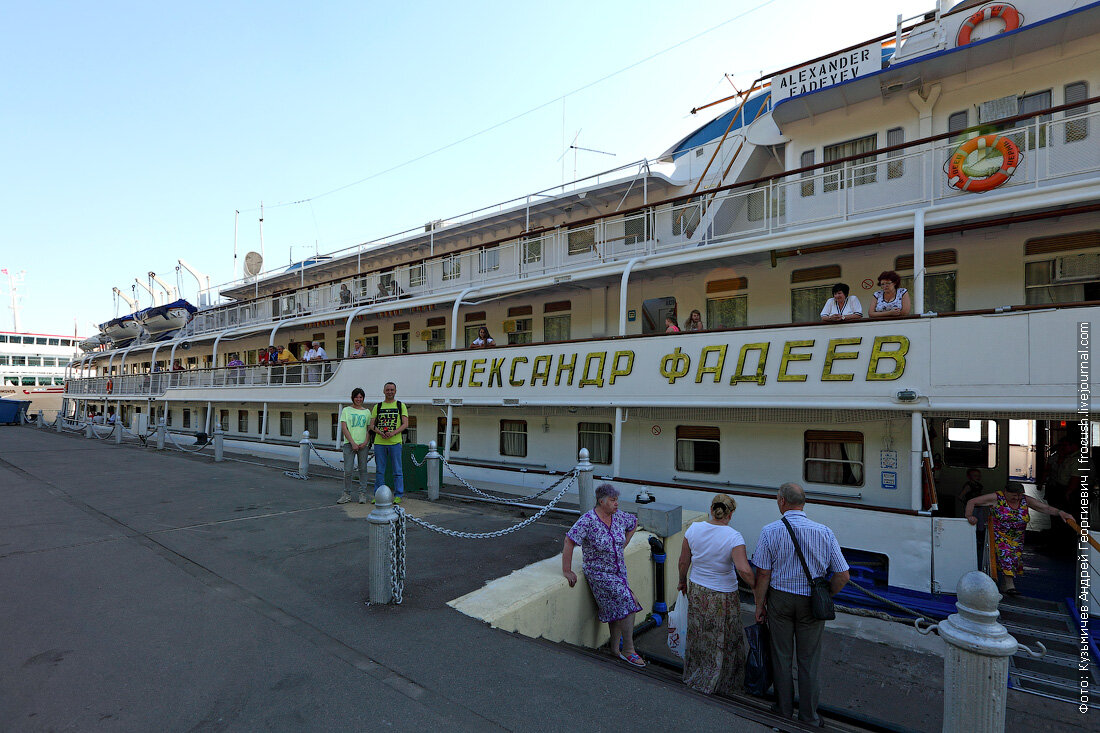 Теплоход «Александр Фадеев» – нечастый гость на причалах Северного речного вокзала Москвы. Летом 2014 года теплоход совершал круиз Пермь – Москва – Пермь. 5 июня «Александр Фадеев» прибыл в Москву, и мне удалось пробраться на его борт. Все каюты были заняты, но кое-что удалось посмотреть.