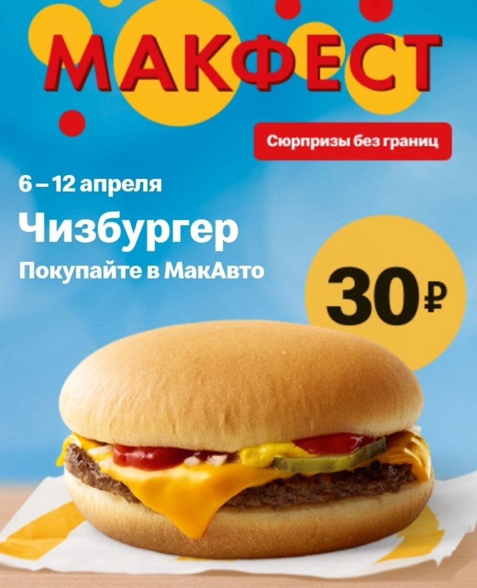 До конца недели в МакДональдс Чизбургеры будут продавать по 30 рублей