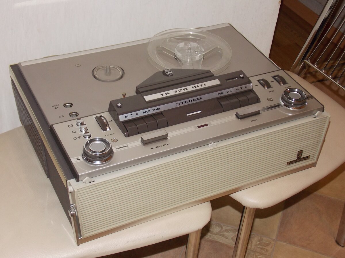 Grundig TK-320 Hi-Fi - еще один ламповый катушечный аппарат из середины 60 годов, от уважаемого бренда, но на этот раз двухдорожечный. Магнитофон стереофонический, с раздельными головками записи и воспроизведения, имеет универсальный ламповый усилитель записи-воспроизведения и оконечный усилитель на германиевых транзисторах с квази-комплиментарным выходным каскадом (на транзисторах одной проводимости). Сквозного канала магнитофоне нет, так как нет раздельных усилителей для записи и для воспроизведения и меня в других статьях спрашивали - "а зачем тогда вообще нужны три головы, если не реализован сквозной канал?"