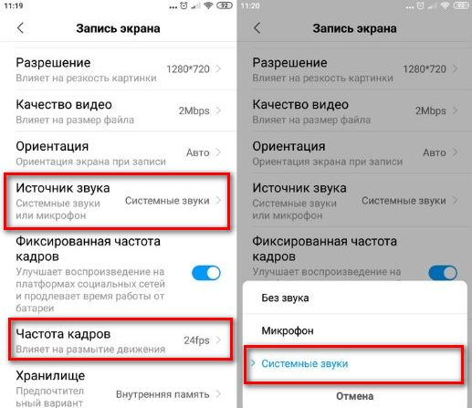 При записи игры у пользователей телефонов Сяоми может возникать проблема: видеоряд идет, а звук отсутствует. Встречается такая ситуация очень редко, причина кроется в некорректных настройках. Особенность смартфонов Xiaomi заключается в том, что в прошивку встроена специальная программа. Ее задачей является осуществление записи экрана. На рабочем столе находится иконка, которая называется «Запись экрана». Надо кликнуть на нее. Приложение откроется, в верхней части экранной поверхности находится изображение шестеренки. После клика по ней открывается меню настроек. Первый параметр – это частота кадров. Разработчики установили его значение в пределах 24 к/сек. Оптимальным вариантом будет показатель 30 к/сек, за счет чего будет достигнута плавность движения персонажей. Обратите внимание, что такие изменения сделают видео более «тяжелым». Для настройки звука следует зайти в подменю «Источник звука». Есть три варианта: без звука, микрофон и системные. Выбираем третий вариа