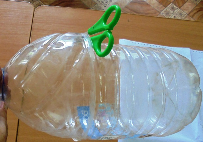 Живца для ловли хищника бывает поймать довольно проблематично, но существует несколько самодельных ловушек, которые не дадут остаться с пустыми руками. Об одной из этих я сегодня и расскажу. Данную ловушку лучше устанавливать на глубине не больше 1.5 - 2 метров, так как обычно именно там собирается большее количество мелкой рыбёшки. Всё что нам понадобится для этой ловушки - это пятилитровая бутылка, канцелярский ножик (или ножницы), верёвка и руки на плечах. 1. Берём нашу бутылку и отрезаем её горлышко, как показано на рисунке. 2. Далее переворачиваем горлышко и скрепляем с основной частью бутылки, как показано на рисунке. 3. Делаем в донышке бутылки отверстие , пронизываем туда верёвку и завязываем крепкий узел. Всё, ваша ловушка готова. Теперь просто положите внутрь хлеба или печенья и закиньте в воду.