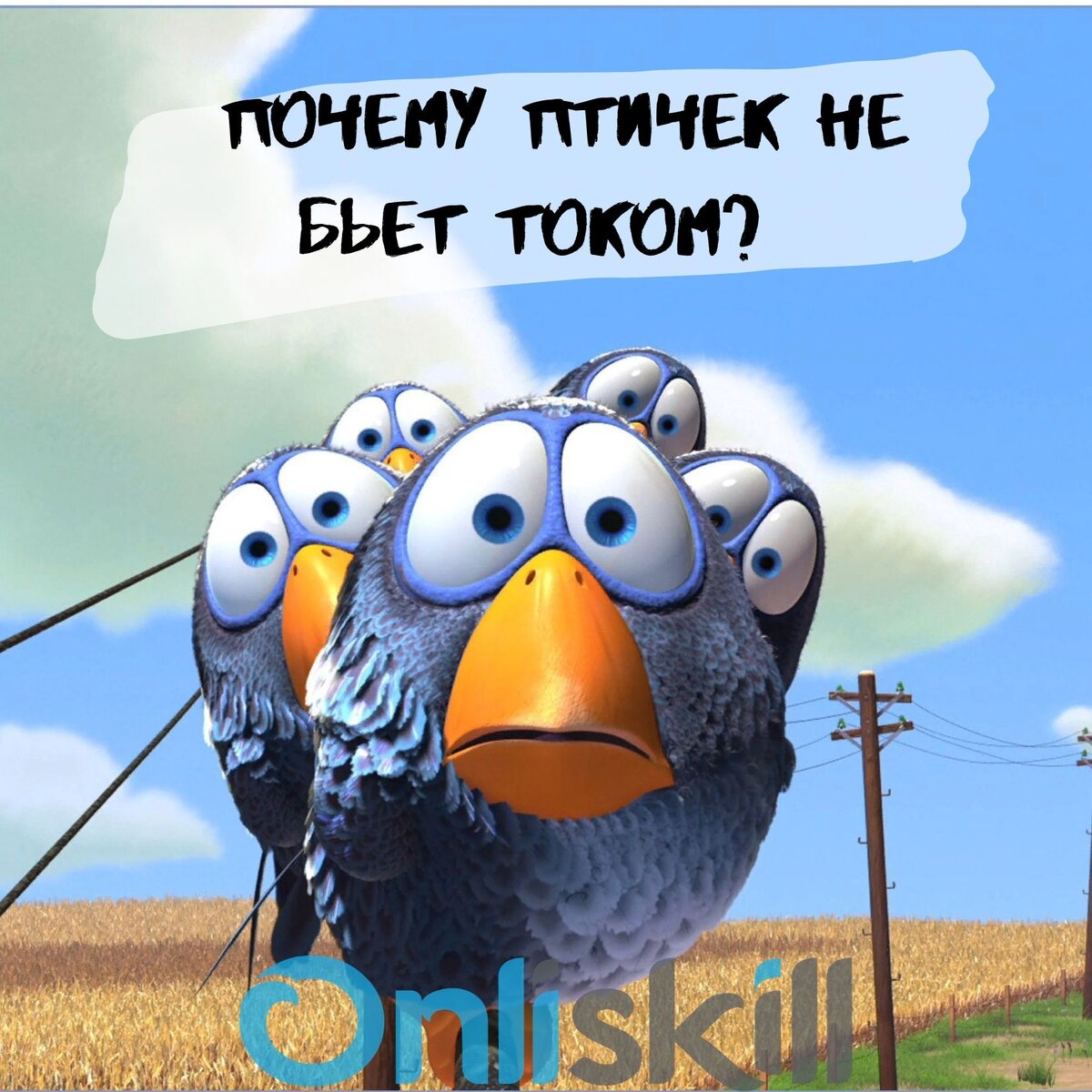 Электрический ток - поток движущихся электронов. Движение возможно только при условии наличия разности ПОТЕНЦИАЛОВ. Птица не потенциал. Она ведь не провод, она не содержит в себе большее или меньшее количество заряженных частиц. Получаем: провод и птица, которая летает в воздухе. Обе «величины» не соприкасаются и угрозы друг для друга не представляют. Теперь представляем, птица села обеими лапками на один провод, а ее лапки находятся на одном уровне и на небольшом расстоянии. Получаем две «величины» : провод и ножки птички. Итог: напряжение в двух точках одинаковое, другого контакта ни с каким другим предметом птица не имеет. Таким образом и птицу током провод не ударит. Но стоит птице задеть крылом дерево , столб, другой провод , как тут же возникнет РАЗНИЦА потенциалов. И беде не миновать:( А еще лапки птичек настолько малы и защищены специальным отталкивающим покрытием, что попросту препятствуют навредить невинной птичке.