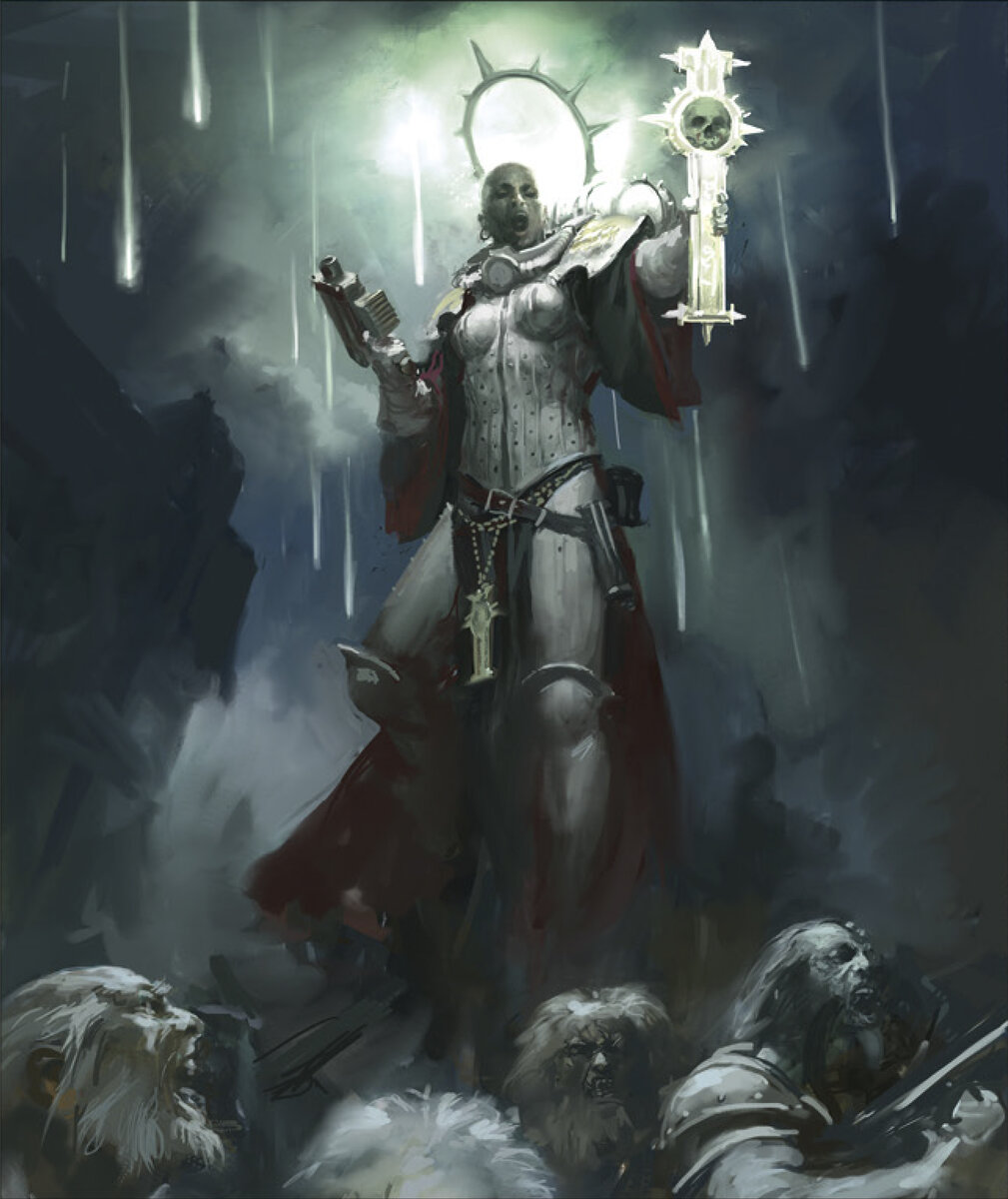 Окутанные святым светом и наделенные божественной безмятежностью, сёстры Священной розы - это спокойствие в центре неистовой бури. Их гимны надежды и спасения подчеркиваются в битве разрывом болт-снарядов и рёвом горящего прометия.