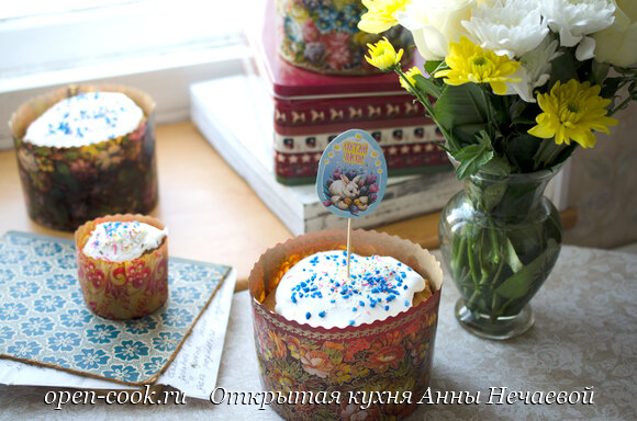 Надеюсь, вам понравятся куличи по нашему семейному рецепту. Они долго не черствеют. Шафрана, кстати, можно положить и побольше, так куличи будут ароматнее и цвет теста ярче.