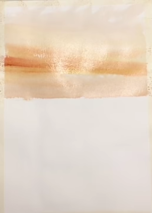 Тёплым цветом закладывает слой неба. Работаем по-мокрому.