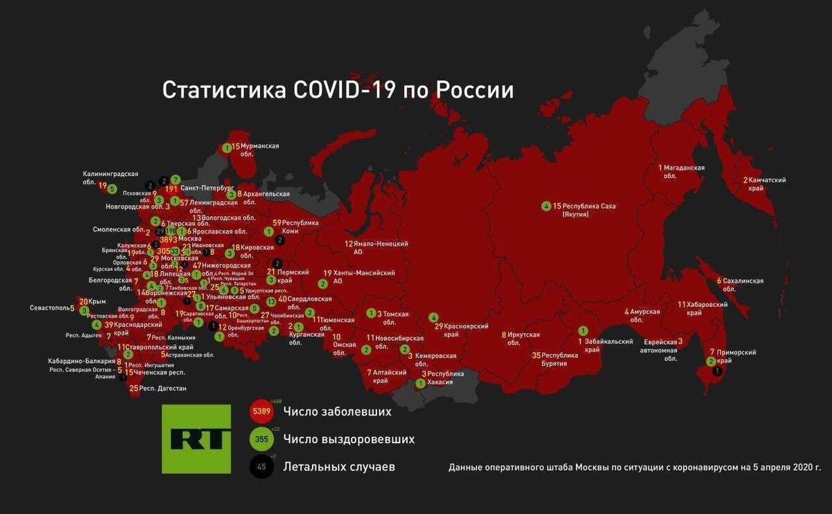 — за последние сутки в России подтверждено 658 случаев заражения в 14 регионах, двое умерли, 22 человека выздоровели; — общее число инфицированных достигло 5389, из них 355 человек выздоровели, скончались — 45; — житель Томска нарушил карантин и посетил пять регионов России. Суд поместил его в обсерватор, нарушителю грозит штраф 40 тыс. рублей; — по словам директора НИИ им. Склифосовского, болезнь у главврача Коммунарки Дениса Проценко протекает не в тяжёлой форме; — в Роспотребнадзоре заявили, что каждый заболевший коронавирусом заражает ещё троих, эту цепочку должна прервать самоизоляция; — у двух депутатов Московской городской думы, Людмилы Стебенковой и Евгения Ступина, положительный тест на коронавирус; — у нескольких сотрудников Пермской краевой клинической инфекционной больницы подозревают заражение коронавирусом, медучреждение закрыли на карантин. Разрешено принимать только пациентов с подтверждённым диагнозом COVID-19; — в Дагестане коронавирус обнаружили у трёхлетнег