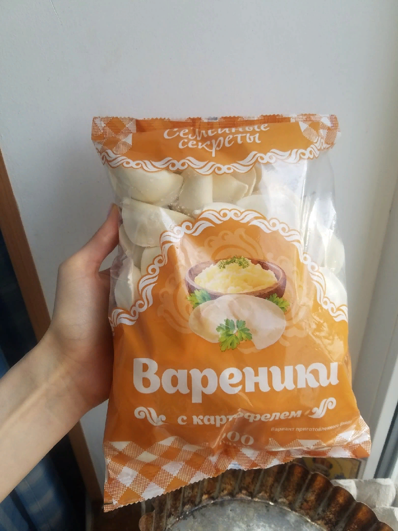 Я большой любитель всяких полуфабрикатов, включая и пельмени, и вареники, и всевозможные замороженные котлеты, наггетсы и всему тому подобное. В этот раз мое внимание привлекла упаковка вареников с картошкой весом в 900 грамм, которые стоили всего 65 рублей. Купила я их в Магните, сами вареники выпускаются под маркой "Семейные секреты".