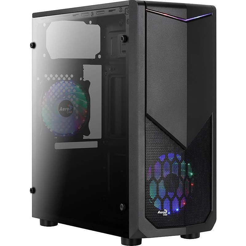 Несмотря на то, что все цены выросли, мы всё равно можем собрать мощный, красивый и недорогой игровой ПК. Начнём пожалуй с корпуса, в этот раз я выбрал самый дешёвый игровой корпус от AeroCool, модель AeroCool Tomahawk-a black. Достаточно неплохой корпус за свои 2100 рублей, с боковым окном из акрила и двумя 120мм кулерами, но при этом его главным недостатком является верхнее расположение блока питания.