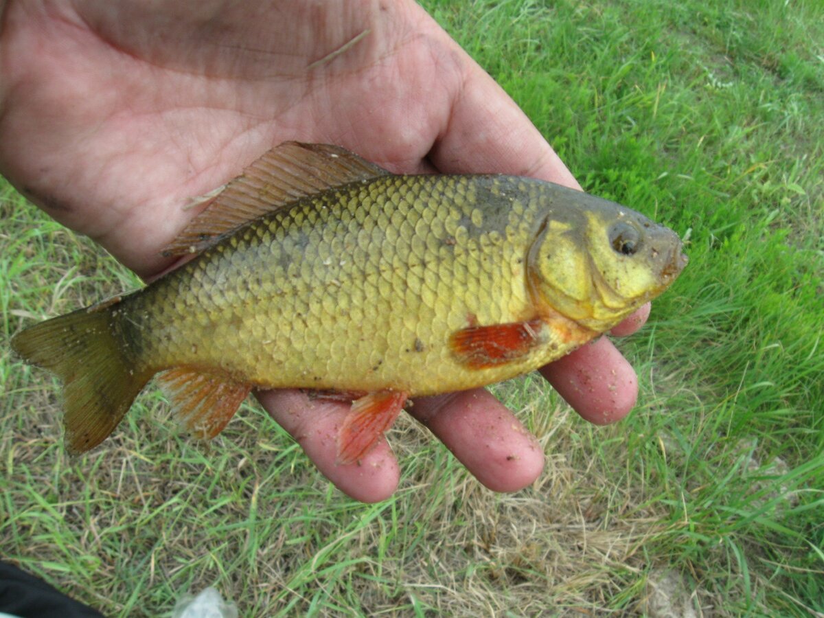 Наверное сложно сейчас найти водоемы, где можно поймать карася золотистого цвета. В простонародье - красный карась.