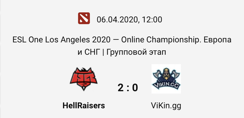 HellRaisers обыграли ViKin.gg в группе А на ESL One Los Angeles 2020 — Online Championshipпо Dota 2 для Европы и СНГ. Матч закончился со счетом 2:0. За победу команда Александра Nix Левина получила три очка. В следующем матче группы А сразятся Nigma и Cyber Legacy. Встреча начнется 6 апреля в 15:00 мск. Групповой этап ESL One Los Angeles 2020 — Online Championship для Европы и СНГ проходит с 4 по 16 апреля. По два лучших коллектива из каждой группы пройдут в верхнюю сетку плей-офф. Команды с третьих и четвертых мест продолжат выступление в нижней сетке.